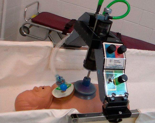 The most likely use of this equipment would be for CI Members living in the Michigan area or for CI Members who have come to Michigan for hospice or hospital care prior to an anticipated deanimation. We have some manually-operated ACDC units — Ambu-CardioPumps, thanks to Paul Michaels who was able to get them imported from Europe — which we purchase for those living outside of Michigan who might want to use them.